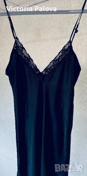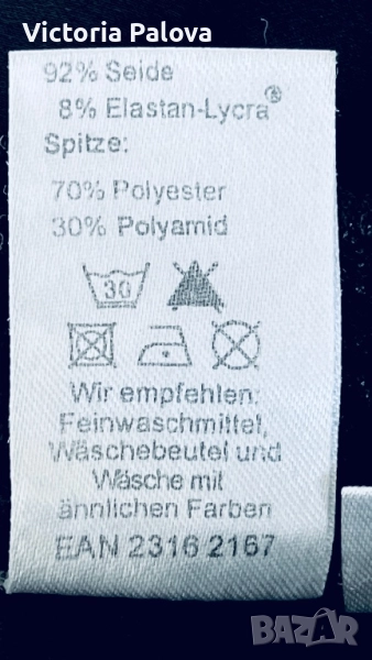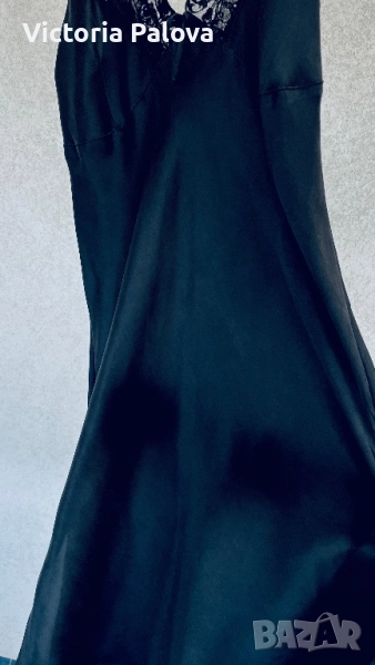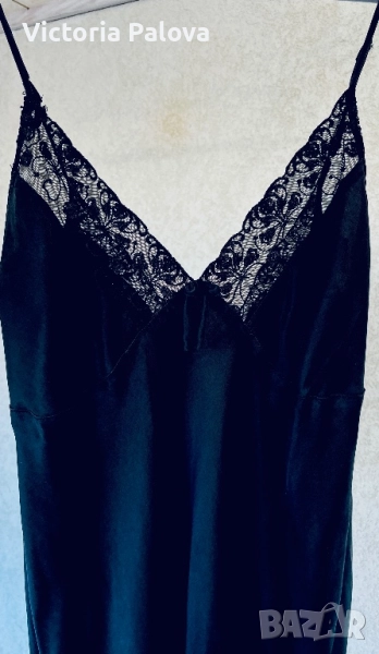 Елегантна нощница от коприна 92% с еластичност за повече комфорт - 8% еластан. Дантелата е от висококачествен полиестер и полиамид. Дължина - 87см, ГО - 48см едностранно. Отговаря на EU размер 40/42. Фин блясък и мекота на коприната, лека еластичност благодарение на Lycra, изящни дантелени детайли.