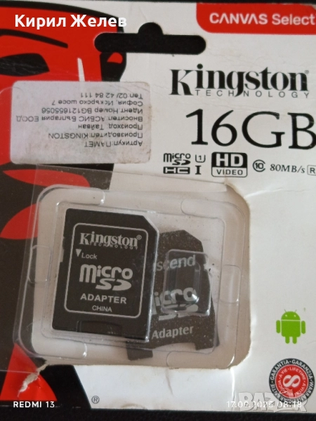 KINGSTON 16GB карта памет с адаптер 50538 → Обява 51740184