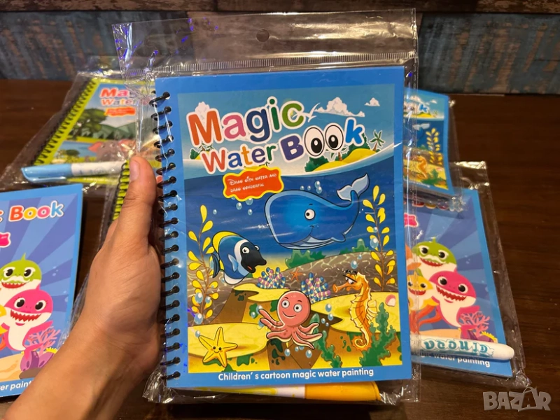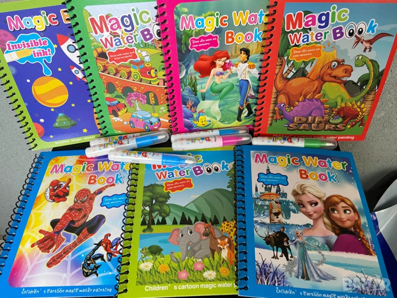 Функции: напълнете моливчето с вода и започнете да рисувате върху страничката за да разкриете скритите изображения.