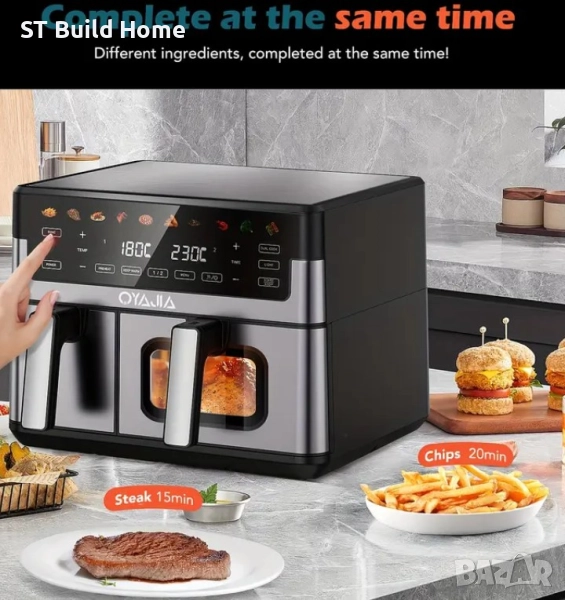 🏆 Дигитален въздушен фритюрник 10L • Две зони • 10-в-1 – STBuildHome 🏆 🔹 Марка/Доставчик: STBuildHome 🔹 Състояние: Ново, в оригинална опаковка --- 📌 Описание: Открийте новия двузонов дигитален въздушен фритюрник с вместимост 10 литра – перфектният помощник във всяка кухня! С 2 независими чекмела и прозорци за наблюдение, готвите едновременно различни ястия – месо, зеленчуци, десерти. 👉 Благодарение на 10-в-1 функции: въздушно пържене, печене, запичане, нагряване, размразяване, дехидратация и др., получавате здравословно и хрупкаво готвене без излишна мазнина. 🧼 Лесно почистване – кошниците са безопасни за съдомиялна. ⚡ Бързо и икономично – спестява време и енергия. 🔒 Стабилност и безопасност – нехлъзгащи крачета и интелигентен контрол. --- ✅ Характеристики: Вместимост: 10 L Две независими зони / чекмела 10 в 1 функции: пържене, печене, запичане, дехидратация и др. Прозорци за наблюдение Дигитален LED панел с таймер и температурен контрол Кошници, безопасни за съдомиялна Нехлъзгащи крачета --- 🎁 Предимства за Вас: ✔ Готвите бързо и здравословно ✔ Две ястия наведнъж – без смесване на вкусовете ✔ Лесна поддръжка и модерна визия ✔ Спестявате ток и пари --- 📦 Доставка: 🚚 Доставка с куриер до адрес или офис на Еконт/Спиди 💳 Опция за преглед и тест преди плащане --- 👉 Поръчай сега от STBuildHome – качествено, бързо и по-евтино!