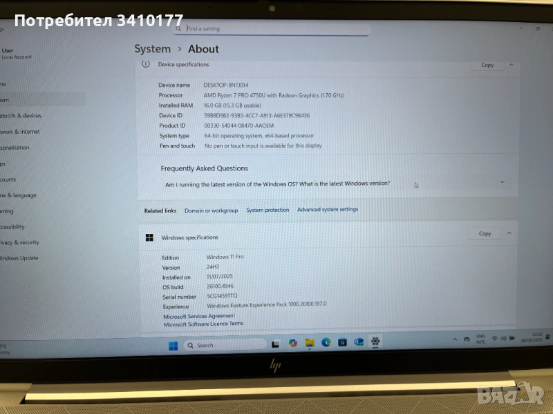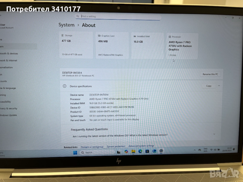 Продавам лаптоп модел HP EliteBook 855 G7 → Обява 51741015