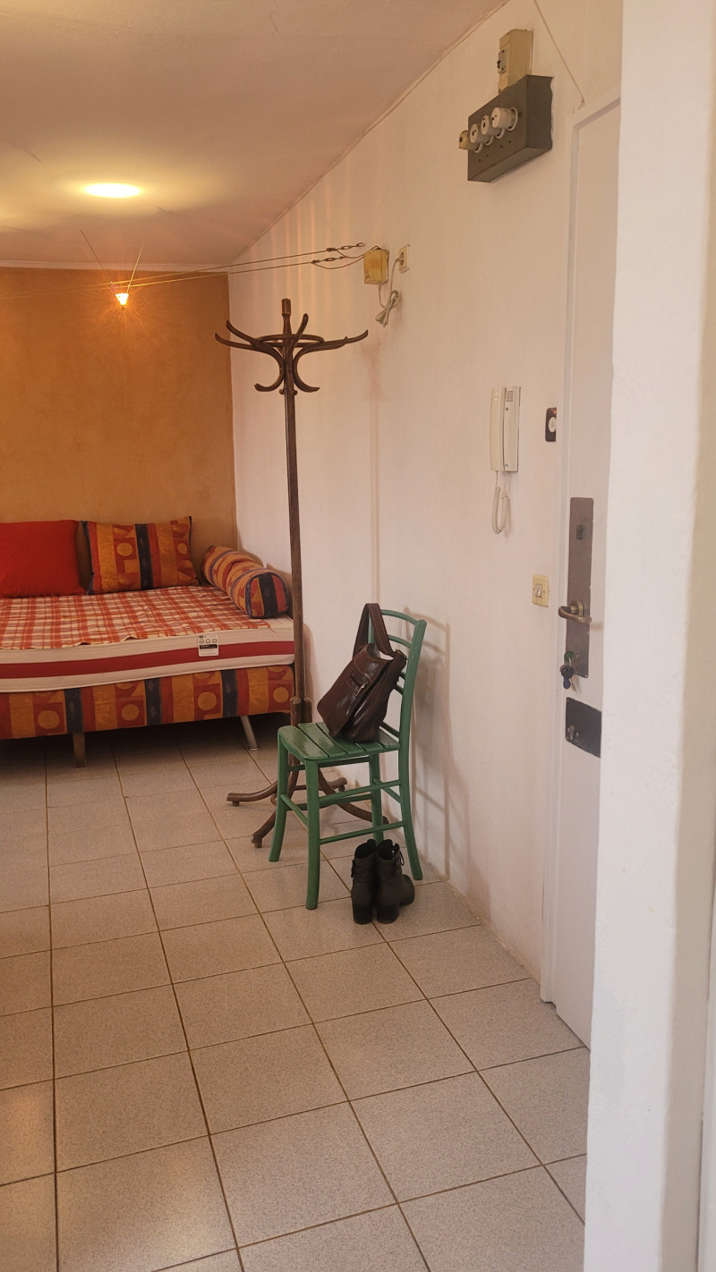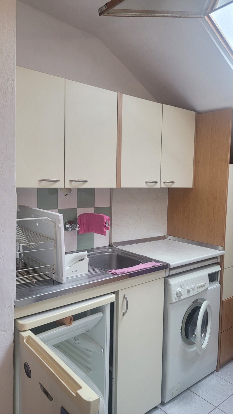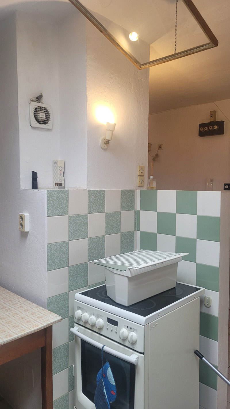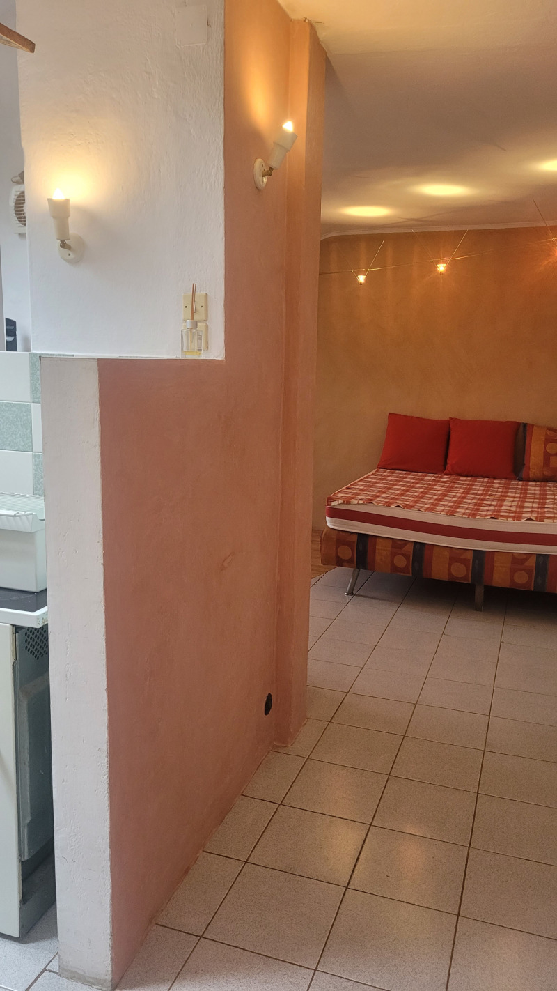 Малък кокетен апартамент тип студио , опън спейс, последен етаж без асансьор, стара стабилна тухлена кооперация на бул.България.Подържан но за освежаване, баня и тоалетна заедно .Близо до спирки на автобуси ,тролей и трамвай, наблизо има много магазини, детски градини и училища.Близо до центъра.