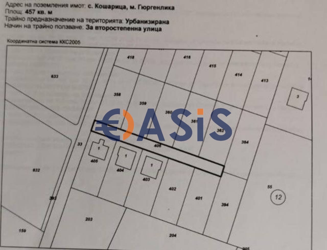 Урбанизиран парцел земя, разположен между Слънчев бряг и Кошарица, в местността Гюргенлика. Предназначението на земята е друг вид земя без определена икономическа цел.