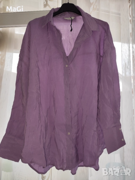 Риза с дълъг ръкав в цвят лилав. Много удобна и лека материя.