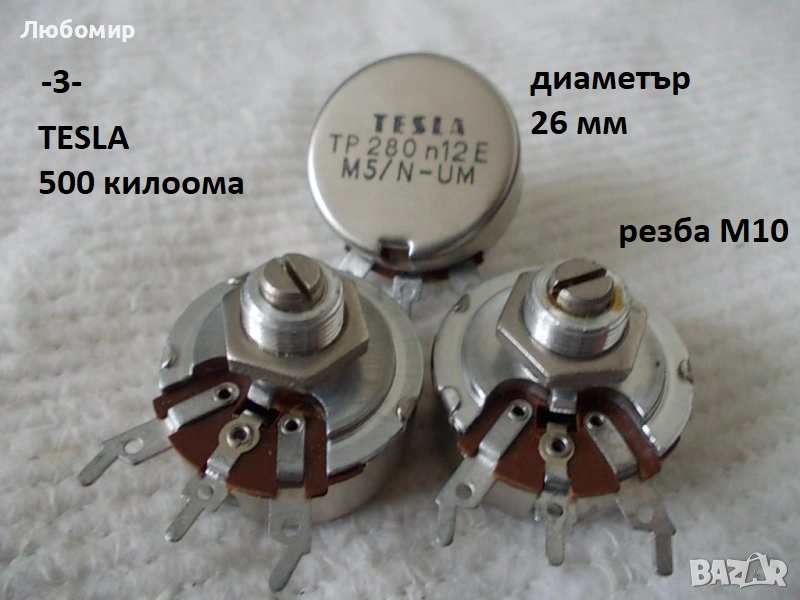 3. Потенциометър 500K TESLA - неизползвано - 3 бр. х 4 лв.