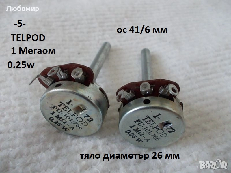 5. Потенциометър 1M 0.25W TELPOD - ПРОДАДЕНО!