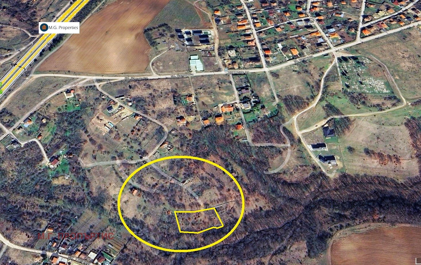 М.Г. ПРОПЪРТИС предлагаме: голям УПИ - парцел в регулация, с Южно изложение и голямо лице 67 метра.