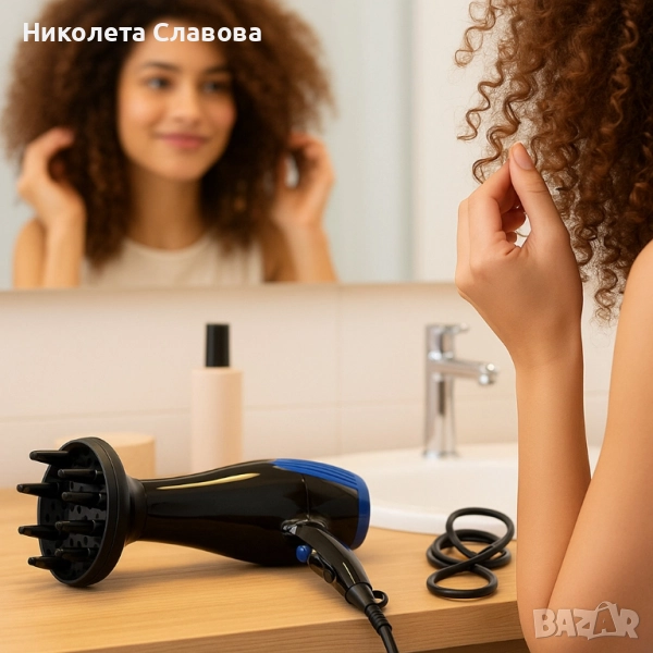 Сешоар с дифузер Rosberg, 2200W, 3 степени на температура, 2 скорости, Черен/син