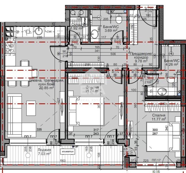 ЕRA Младост предлага тристаен апартамент в новоизграждащ се жилищен комплекс, находящ се в ж.к. Младост 4, гр. София. Апартаментът се състои от: всекидневна с кухненски бокс, две спални, две бани с тоалетна, входно антре, склад и тераса. Имотът ще бъде предаден на шпакловка и замазка, с масивна входна врата от висок клас и дограма, ел. инсталации и ВиК - на точка и тапа, газ до апартамента. Качествено и модерно изпълнение от доказал се инвеститор.