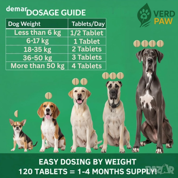 Таблетки за кучета VERD PAW Itch & Immunity - 120 таблетки / 120 грама