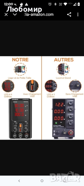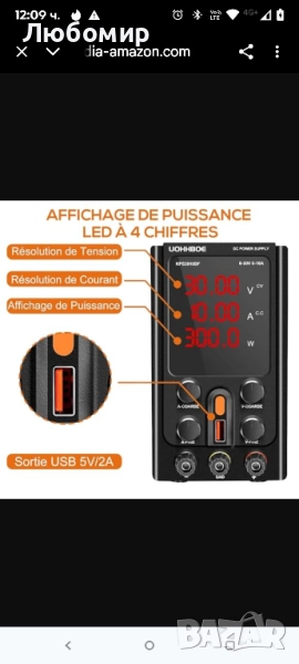 Лабораторно захранване UOHHBOE 30V 10A DC, регулируемо стабилизиращо DC захранване с 4-цифрен