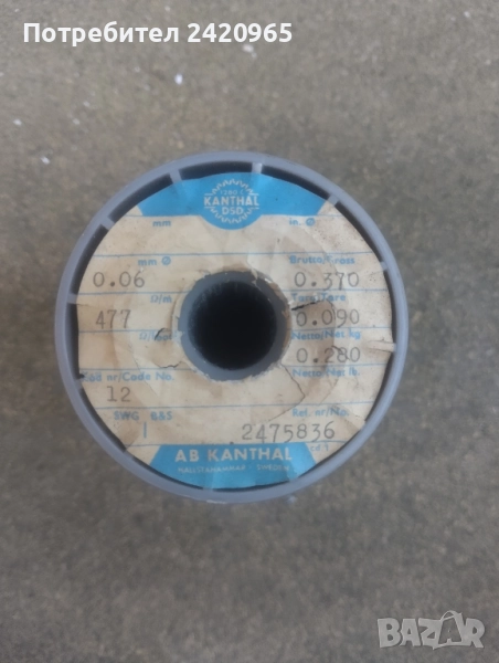 Кантал 0.06 370 гр, снимка 1 - Други машини и части - 51743303 Кантал 0.06 370 гр, снимка 2 - Други машини и части - 51743303 Кантал 0.06 370 гр, снимка 3 - Други машини и части - 51743303 1/3