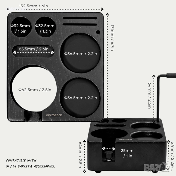 Станция за еспресо Normcore, дървена, подходяща за 51 до 54 мм аксесоари