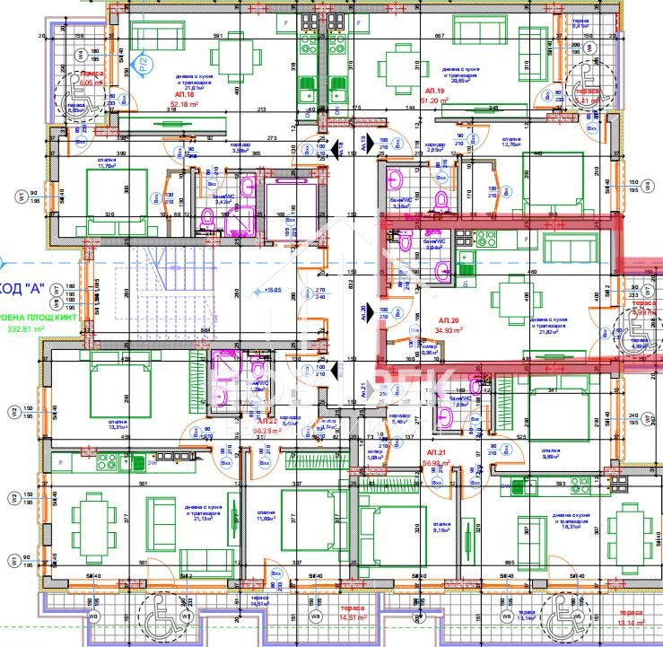 - една тераса - 4,99 кв.м.;