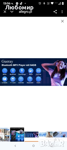 Gueray Bluetooth MP3 плейър 64GB, MP3 плейър с високоговорител и слушалки, MP3 плейър, подходящ за аудиокниги, поддържа FM радио, запис на аларма, видео, електронни книги, TF карта до 128GB.Многобройни функции: MP3 плейър Gueray с Bluetooth 5.0, може да се използва за възпроизвеждане на музика, FM радио, възпроизвеждане на видео, запис на глас, будилник, електронни книги, преглед на снимки, прехвърляне на файлове. Поддържа скрийнсейвър и таймер за заспиване. Лесно търсене на любимите ви песни в плейлиста, по-добро възпроизвеждане на музика, модерен и лесен за употреба.