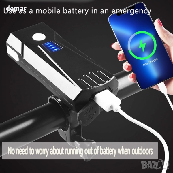 Тази велосипедна светлина осигурява 1000 лумена яркост с обхват на лъча 200–300 м и двоен режим на насочено/разпръснато осветление за широка и ясна видимост дори при лошо време. Тя предлага пет интелигентни настройки на осветлението с функция памет, плюс режим на по-меко дишане за по-безопасна употреба през нощта. Изработена от издръжлив корпус от алуминиева сплав, тя е водоустойчива, удароустойчива по IP65 и проектирана за дълготрайна работа с ефективно разсейване на топлината. Подвижният дизайн я прави универсална за колоездене, туризъм, къмпинг или за използване като фенерче, а универсалната скоба позволява бърз монтаж на повечето велосипеди. Допълнителна безопасност се осигурява от вградена водоустойчива сирена, докато батерията с капацитет 5000 mAh работи като преносима батерия с бързо зареждане Type-C, поддържайки както бързо презареждане, така и употреба по време на зареждане.