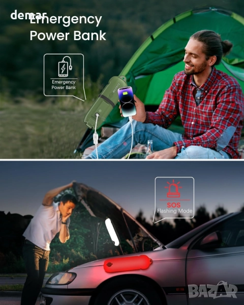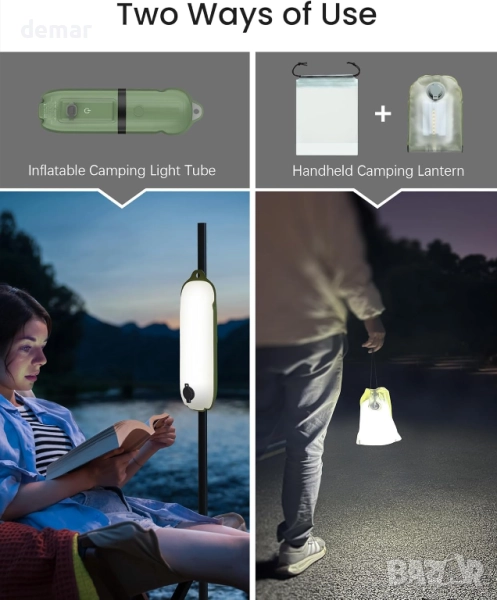 Тази надуваема къмпинг лампа е с компактен сгъваем дизайн, който се надува за секунди, за да осигури широкообхватно осветление, като същевременно се сгъва до размера на телефон за лесно носене. Тя предлага до 12 часа работа с едно зареждане с USB презареждане и дори може да захранва мобилни устройства при спешни случаи. С четири режима на осветление, включително ярко, слабо, постоянно червено и мигащо червено, плюс вграден пръстен за окачване и магнит, тя е универсална за палатки, клони или метални повърхности. Изработена от водоустойчив, издръжлив TPU, тя издържа на дъжд, капки и външни условия, което я прави подходяща за къмпинг, риболов, пътуване и аварийни ситуации.