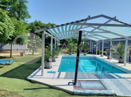 Басейн с размери 10 x 5 метра. Бар до басейна с кухненски кът и барплот.