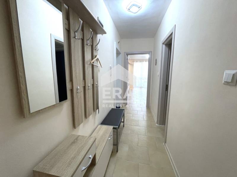 ЕРА Варна Тренд предлага под наем тристаен обзаведен апартамент, в тухлена сграда с асансьор, на метри от Общината и Икономически университет. Имотът е със застроена площ 85 кв.м (100 кв.м с общите части), разположен на четвърти етаж от общо 6 етажа. Състои се от просторна дневна с кухненски бокс (31 кв.м) и излаз на остъклен с ПВЦ балкон (4 кв.м), две спални (14 кв.м и 13 кв.м) с излаз на общ за двете стаи балкон (4 кв.м), коридор (8 кв.м) и баня с тоалетна (5 кв.м). Изложението е юг (дневна) - север (спални).