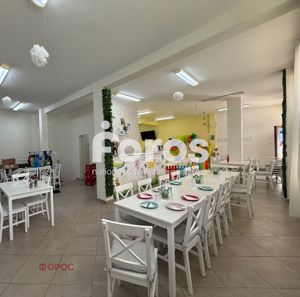 В момента партера е оборудван и работи като парти център.В цената е включено и оборудването.