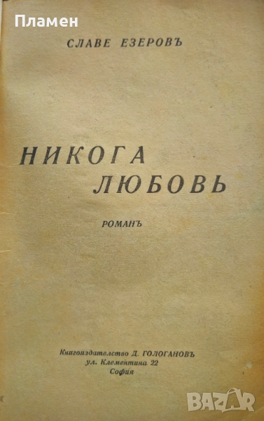 Славе Езеровъ - Никога любовь -издание 1940г. в 152 страници -15 евро.