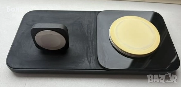 Оригинална Base One Max (MagSafe | Carbide на НОМАД / NOMAD станция за едновременно зареждане на 2 устройства- мобилен телефон и часовник Apple Watch.