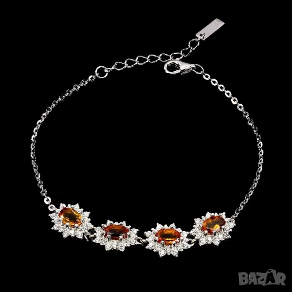 925 сребърна гривна с цитрини 6х4мм, подходяща за подарък V11