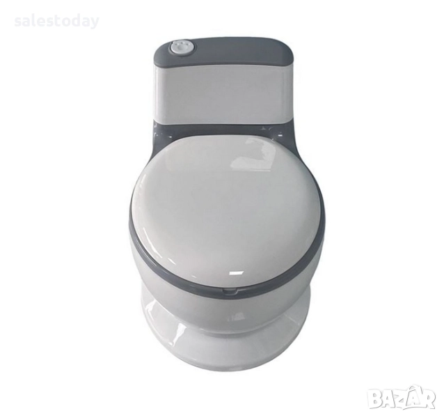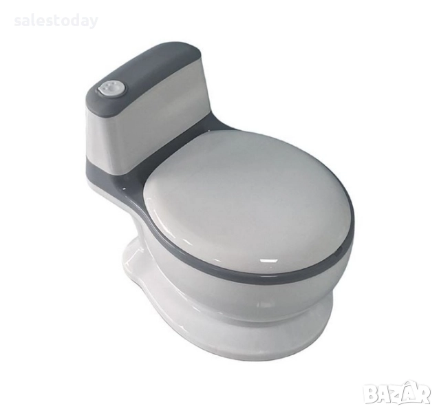 Тоалетна за приучване към гърне, която помага на детето ви да премине по-плавно от използване на памперс към ползване на тоалетна. Има неплъзгаща се основа за стабилност, седалка с мека възглавница, тъй като приучването ще отнеме време, и контейнер (21x15 см), който се сваля за лесно почистване.Разполага с държач за бебешки кърпички и тоалетна чиния с реалистичен звук при работа. Така ученето ще се превърне в приятна игра. Работи с 3 батерии AG13 (включени).