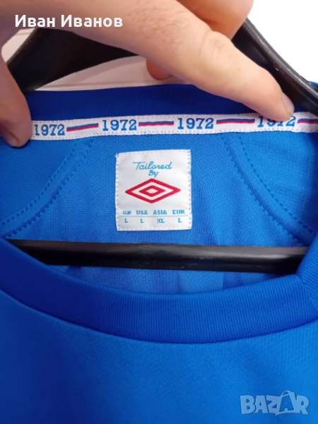 Оригинална фланелка на Рейнджърс от сезон 2012/2013г. в перфектно състояние, не е обличана никога, само е съхранявана. Всички етикети и серийни номера са налични. Закупена е от феншопа на Айброкс(стадиона на Рейнджърс).
