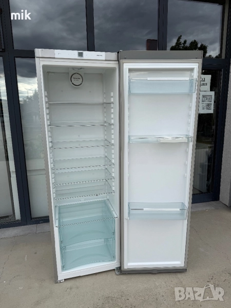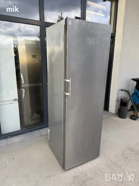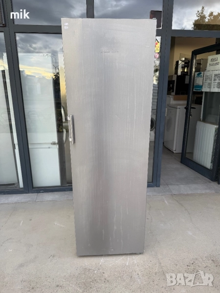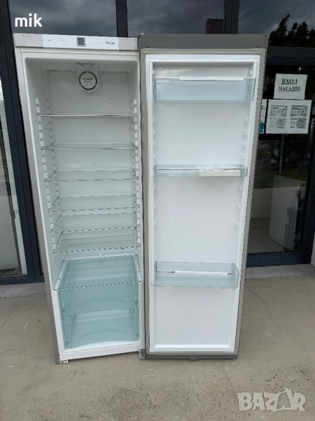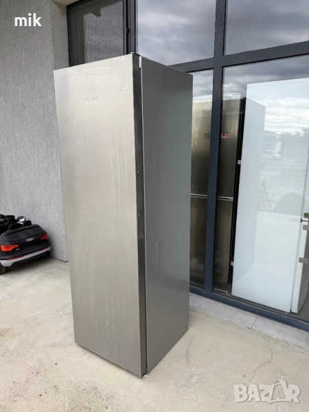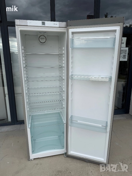 Иноксов Хладилник - Охладител Миеле. Размери 185-60-60. Оригинално и здраво оборудване. Вентилатор за обдухване на въздуха. С електронен дисплей за настройване на температурата. Обемм 393 литра. Произведен в Германия. Много тих иикономичен компресор. Работна температура 2-10 градуса.
