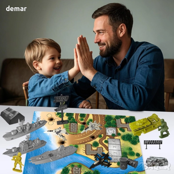 Този военен комплект от 54 части включва издръжлив самолетоносач, бойни кораби, самолети, хеликоптери, танкове, превозни средства, войници и различни аксесоари, всички изработени от здрава пластмаса за игра на закрито и на открито. С подвижни елементи като въртяща се танкова кула, въртящи се хеликоптерни витла и издърпващи се самолети, той предлага реалистично действие за въображаеми битки. Проектиран да стимулира креативността и да подобри уменията за решаване на проблеми и координация, той е привлекателен и за колекционери и е идеален подарък за деца, интересуващи се от военни игри.