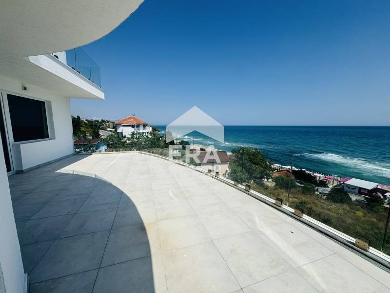 ЕРА Вива продава тристаен апартамент в бутикова сграда от затворен тип, разположена на първа линия до плаж Кабакум, гр. Варна. Жилището е със застроена площ от 105.26 кв.м. /118.67 кв.м. с общите части/ и е разположен на пети етаж. Състои се от коридор, светла дневна с кухненска част, две спални, баня с тоалетна, тераса към едната спалня и голяма панорамна тераса с директен изглед към морето идеалното място за релакс. Перфектен имот за ваканция или целогодишно живеене.