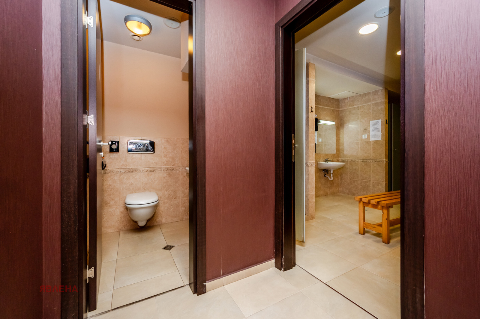 съблекални с душове и санитарни помещения.
