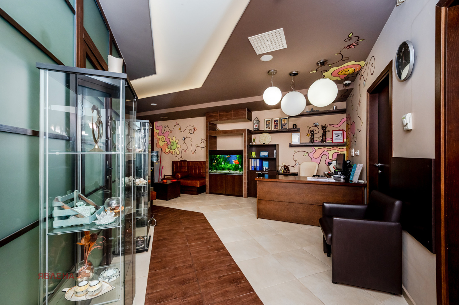 Интериорът е изпълнен с висококачествени материали, които създават уют и хармония. Обзавеждането е от висок клас, с топла цветова гама и професионално осветление. Цялото пространство е климатизирано, добре вентилирано и напълно технически оборудвано.