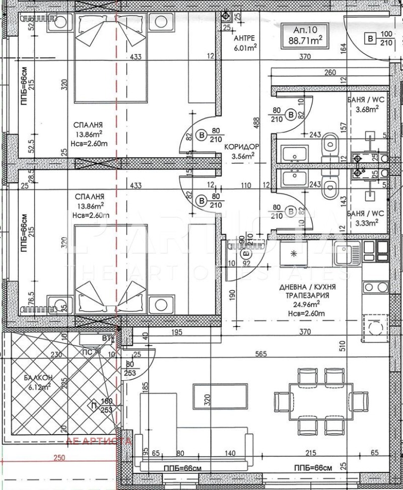 Без комисиона от купувача!Тристаен тухлен апартамент 10 със застроена площ от 88.71кв.м.(103.40кв.м. с общите части).