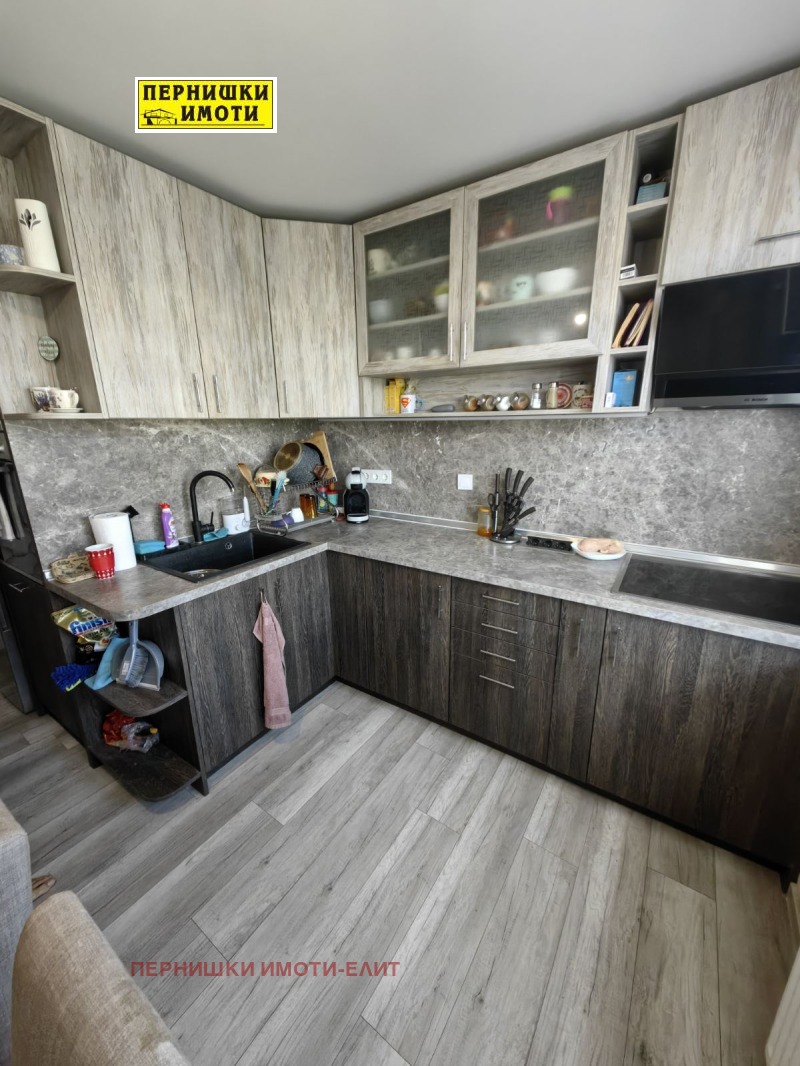 Агенция Пернишки имоти- Елит продава ексклузивно тристаен непреходен апартамент в най предпочитания квартал в гр. Перник, а именно кв. Изток. Имотът е в близост до Кауфланд, Фантастико, училища, детски градини и пътят за гр. София. Жилището се състои от голяма кухня с трапезария, голяма дневна, детска стая, спалня с тераса, баня и отделно тоалетна. Апартаментът е основно ремонтиран със сменени ВиК и ел. инсталация, PVC дограми, интериорни врати и с външна санировка. Подовите настилки са ламинат, стените са на латекс, таваните на гипсокартон с вата. Изложението е изток- запад, като апартамента е и вътрешен, което го прави и по топъл. Сградата е с поддържани общи части, асансьорът е работещ и има широк паркинг за паркиране. Апартаментът се продава с обзавеждането. Агенцията съдейства за жилищни ипотечни кредити.