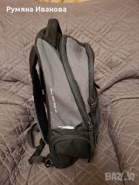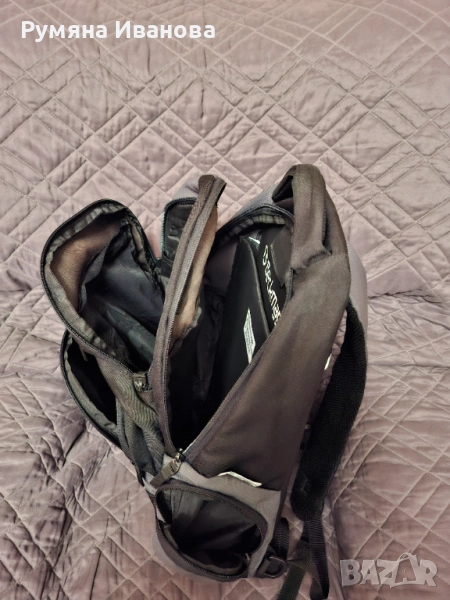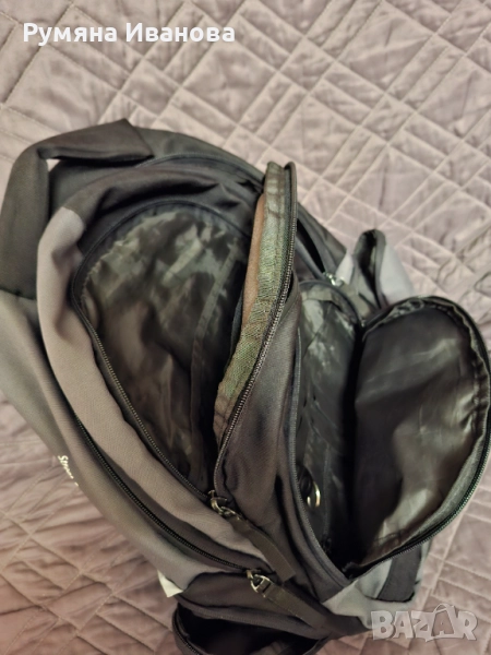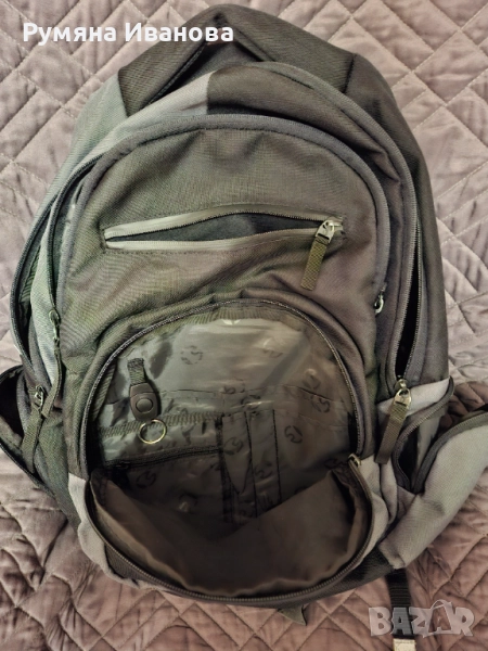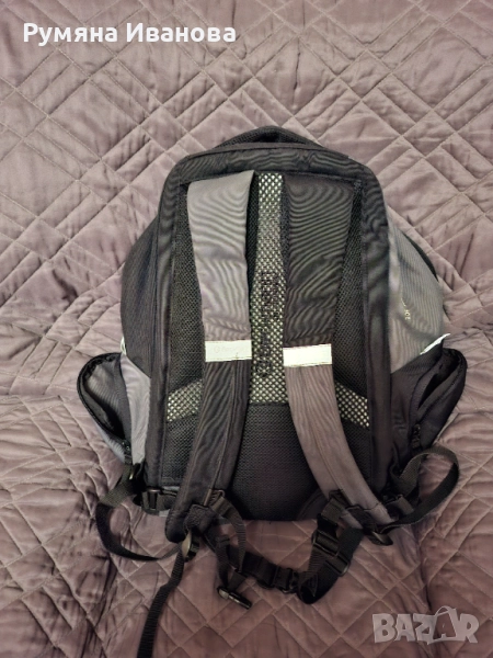 Ортопедична раница с твърд гръб и допълнителна алуминиева шина за по-добра опора. Има много джобове и отделение за лаптоп. Много запазена, единствена забележка е няколко малки ужулвания на емблемата. Основен цвят черен в комбинация сиво.