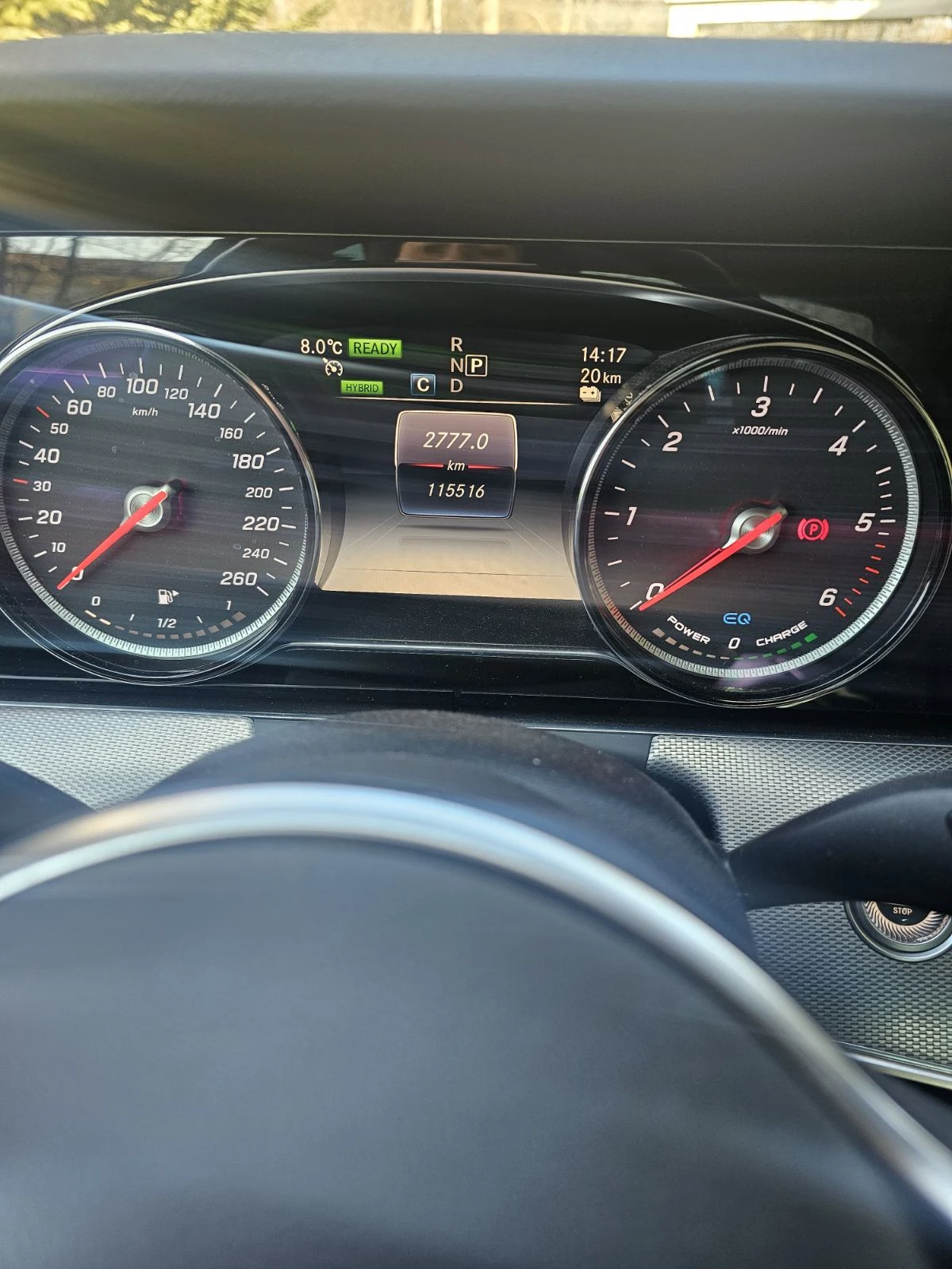 Plug-in хибрид с 13, 5 kW батерия и пробег до 55 км. само на ток. Капацитет на батерията на 90% 9 степенна автоматична скоростна кутия, която сваля разхода до под 5 л. на 100 км. Развива от 0-100 км/ч за 5, 7 секунди. Километрите са реални, колата е с включена система мобилно приложение Mercedes ME, всичко може да се провери в официален или друг сервиз по избор. Колата е без визуални и технически забележни.