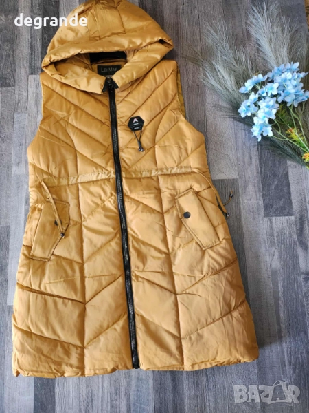 Дамски дълги елеци с качулка, снимка 1 - Елеци - 51751728 Дамски дълги елеци с качулка, снимка 2 - Елеци - 51751728 1/2