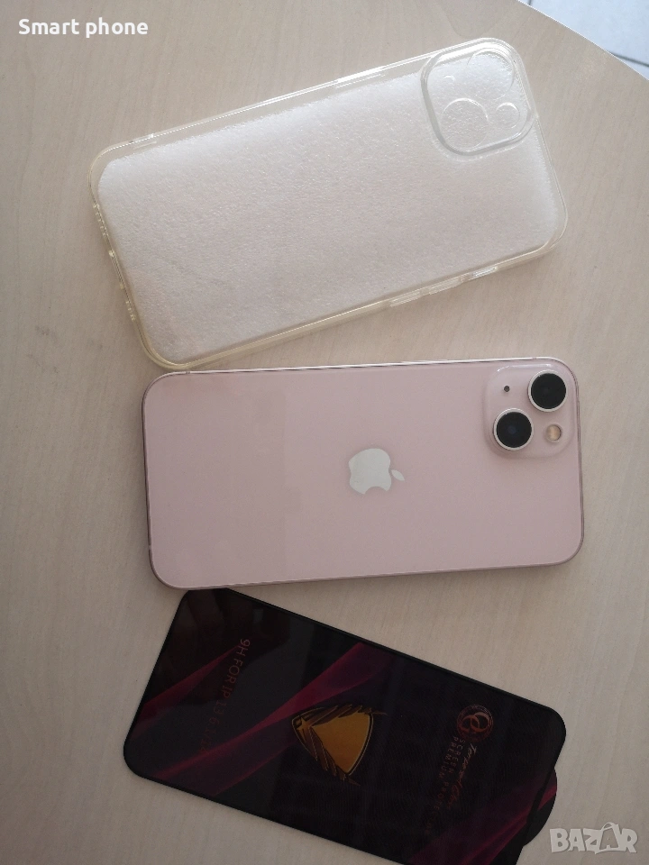 Iphone 13 Pink128 gb /100%Battery health. Телефонът е в отлично техническо и визуално състояние, работи отлично. Отключен към всички Оператори. Винаги е ползван със стъклен протектор и силиконов гръб. Предлага се с кабел за зареждане. Подарявам нови стъклен протектор и силиконов гръб.