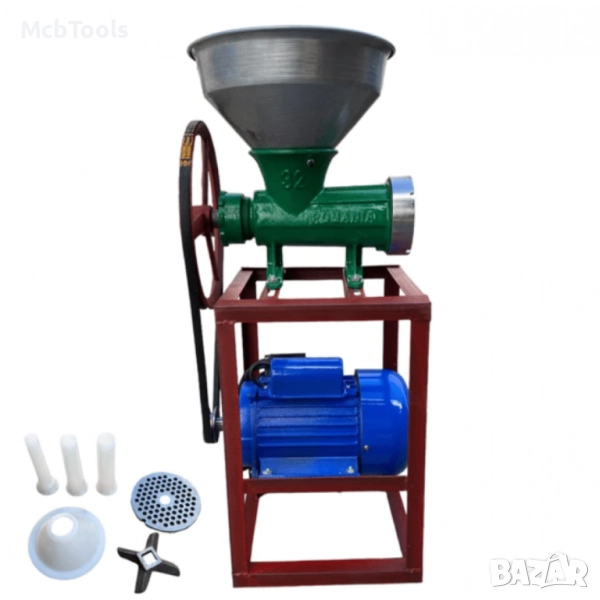 Чугунена месомелачка 32-ри номер с електромотор, стойка и метална фуния
