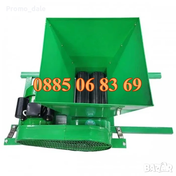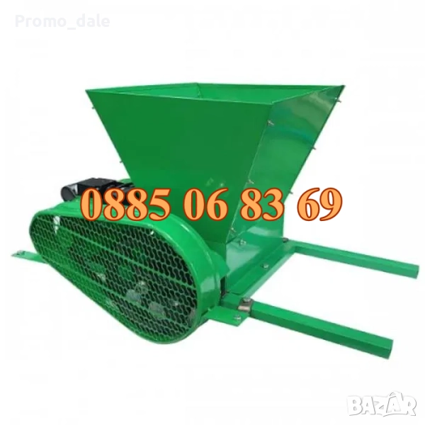 Гроздомелачка с електродвигател 750 W, 240-440 kg/h се използва за смачкване на грозде и получаване на вино. Работата на електрическата гроздомелачка се осигурява от електродвигател с мощност 750 W с 2850 r/min на барабана.