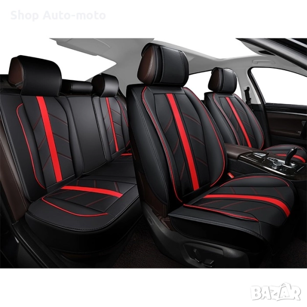 Универсална тапицерия за кола Automat 1171 – 5 части, еко кожа, Черен с червен