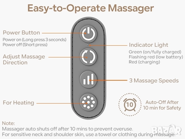 - Модел/Тип: 2-в-1 Масажор за Врат и Гръб (5D Шиацу)