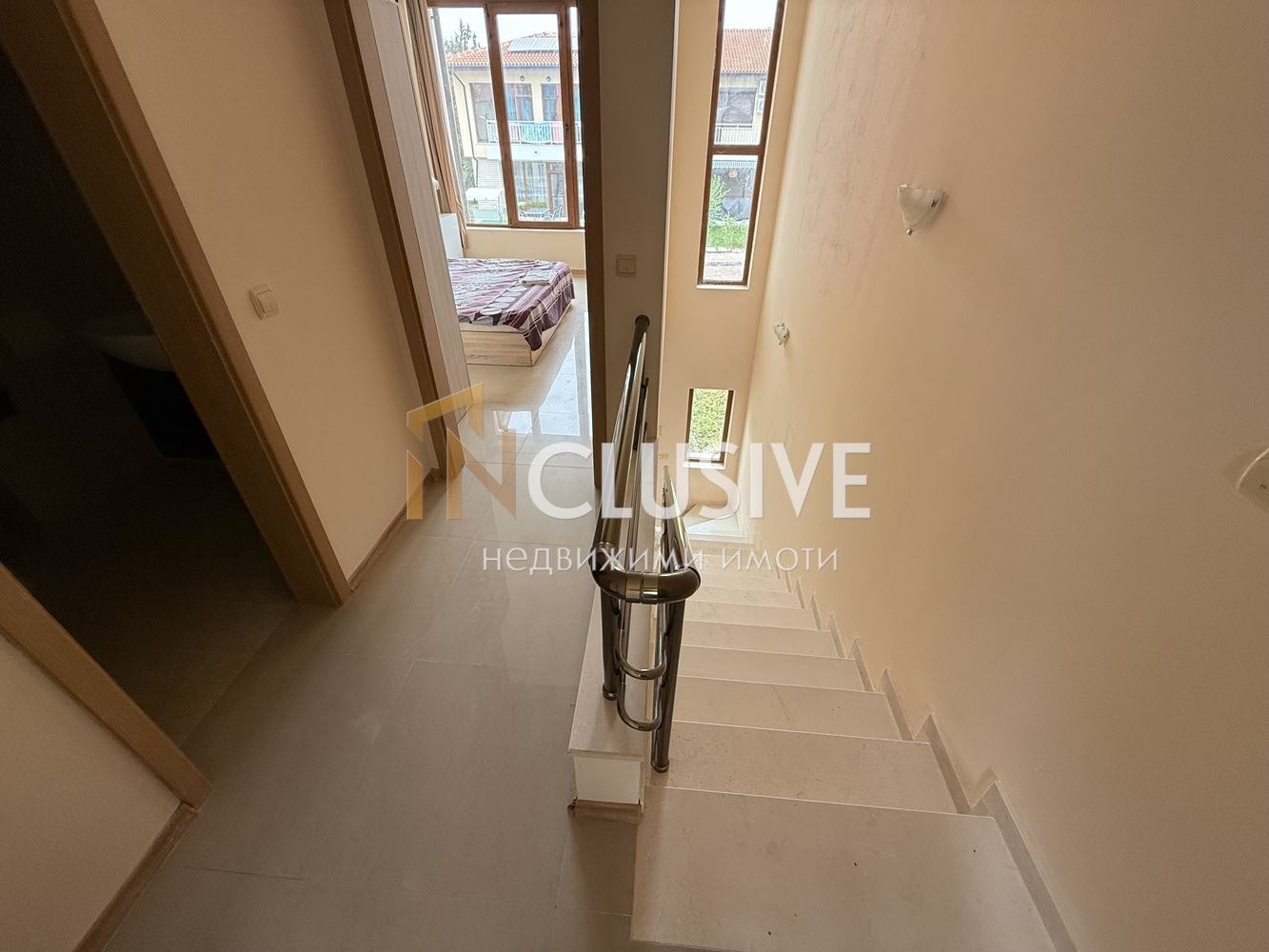 INCLUSIVE Bарна иска да Ви представи двуетажна редова къща в комплекс Лайтхаус Голф Резорт, Балчик. Комплексът разполага с голф, открити и закрити басейни, фитнес, спа, барове, ресторанти, магазини и няколко спортни съоръжения, като тенис, баскетбол и волейбол. Жилището е със следното пазпределение - първи етаж разполага с всекидневна с кухненски бокс, тоалетна и балкон. Втори етаж разполага с две спални и един комбиниран санитарен възел. Имотът е напълно обзаведен и оборудван с всичко необходимо за един съвременен начин на живот, включително, всяко помещение разполага с климатик. Към къщата има и прилежащ заден двор. Имотът е идеален както за живеене, така и за отдаване под наем.