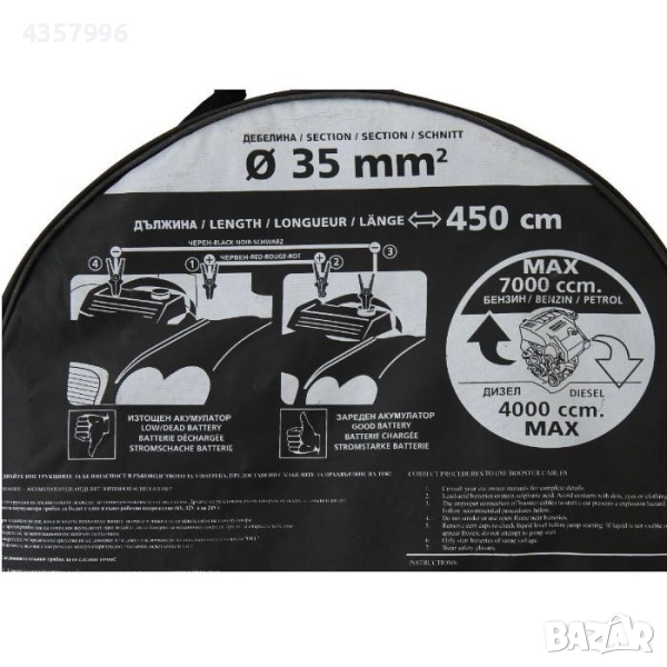 Кабелите са подходящи за всички 12/24V автомобили с бензинов двигател до 7000 кубика и дизелови до 4000 кубика.