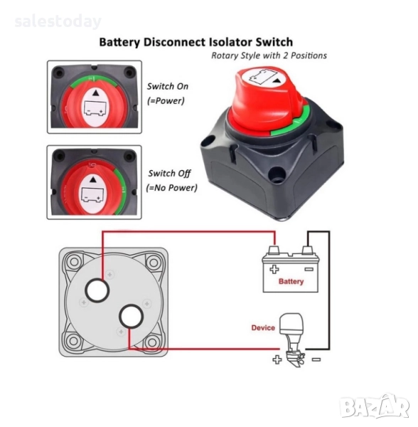 Универсален прекъсвач за акумулатор с компактен и здрав дизайн – идеален