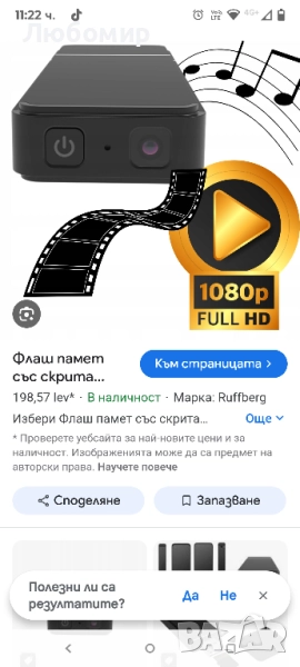 Флаш памет със скрита камера 64гб, Full HD, 4 часа
