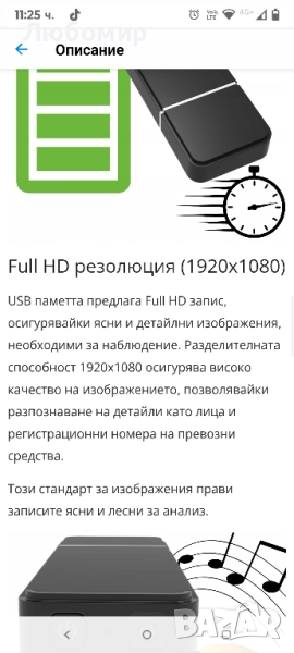 Флаш памет със скрита камера Ruffberg, Full HD, 4 часа запис, 7.5x2.4x0.9см, черна.Тази усъвършенствана флаш памет със скрита камера ви позволява да записвате Full HD видео до 4 часа с едно зареждане . Детекторът за движение задейства записа само когато бъде засечено движение, спестявайки място на вашата карта с памет. Устройството поддържа и цикличен запис и може да работи с постоянно захранване, което го прави идеално за непрекъснато наблюдение.