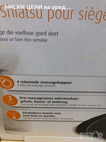 Комфортна масажна седалка за дома или офиса, която комбинира шиацу масаж с опция за затопляне, за отпускане на мускулите и облекчаване на напрежението.